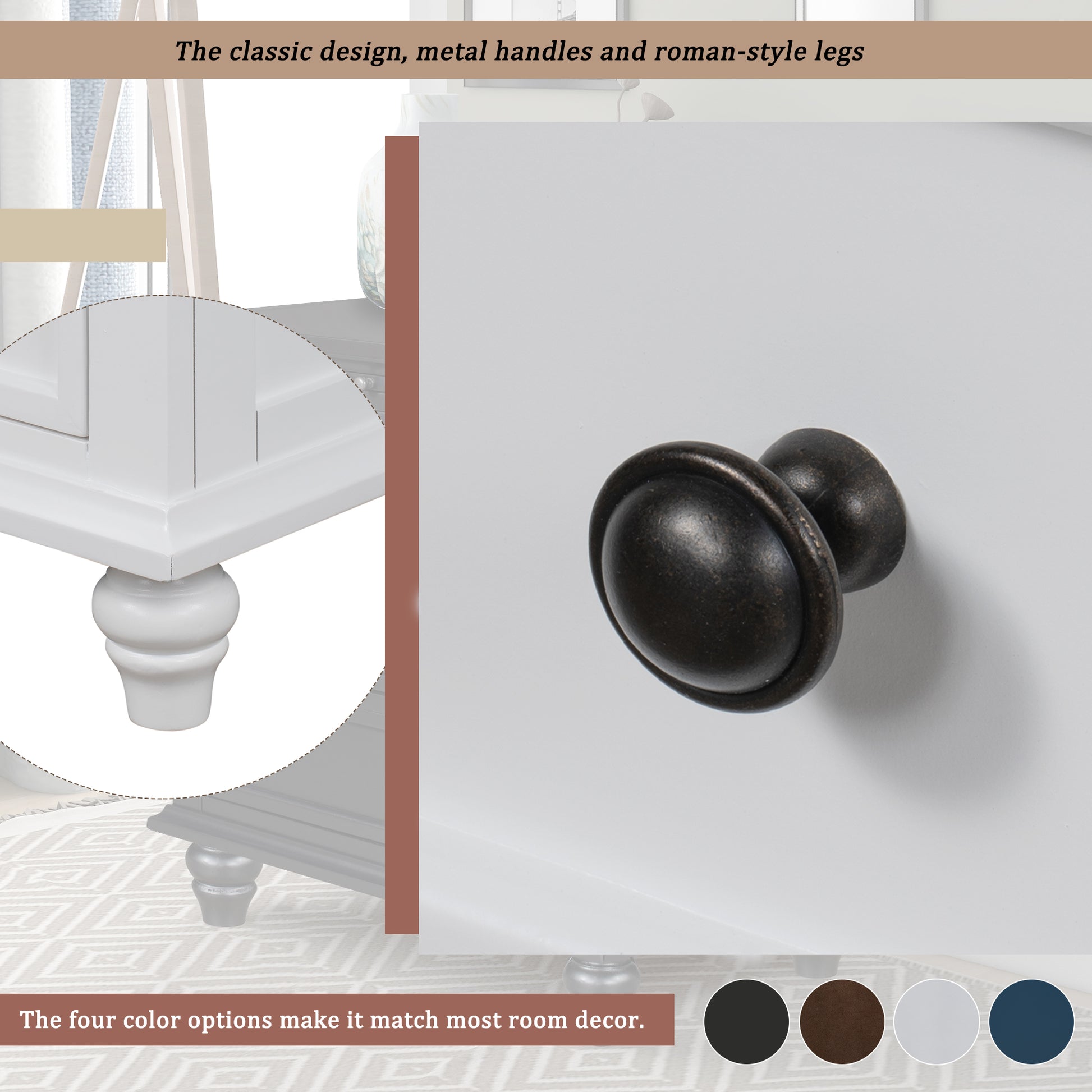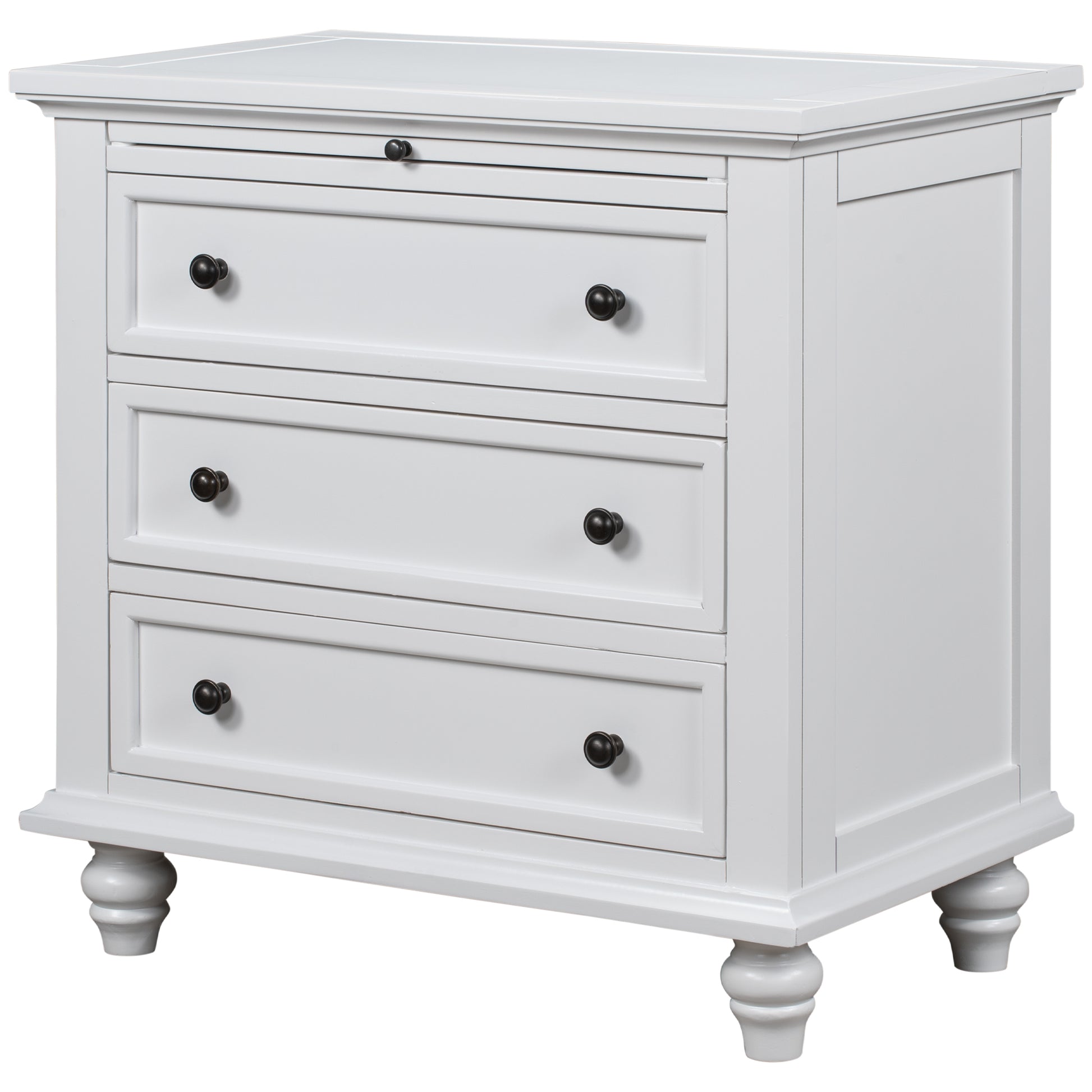 Keep essential items within arm’s reach with this end table with storage. This beautiful piece stands perfectly next to your sofa. This cabinet features 3 spacious drawers for storing remotes, coasters, magazines and other household items. Place a lamp on the large top surface or use it to keep your beverage within arm’s reach. The straight lines and finish of this piece work great with any existing décor. This cabinet with storage requires no assembly upon delivery.